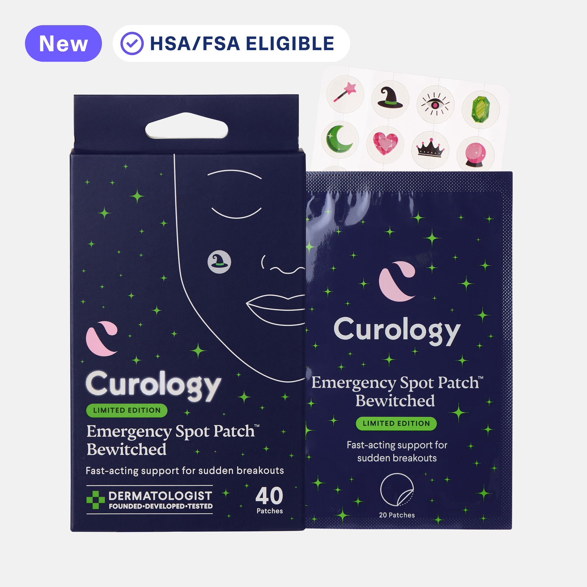 Cast a spell on surprise blemishes with our hydrocolloid patches and watch magic unfold. Designed to help protect against picking and popping while reducing the look of blemishes with visible results in as little as 8 hours.* Plus, our fun limited-edition designs get you in the Halloween spirit and embrace your inner witch. *In a 33-subject consumer questionnaire, 88% of subjects said they saw results after 8 hours of wear.